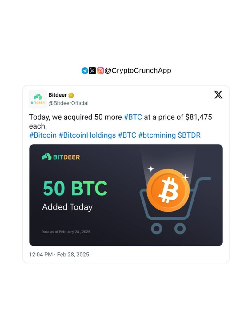 Bitdeer Technologies Group, a leader in blockchain and high-performance computing, announced a significant purchase of Bitcoin amidst a market downturn. On February 28, the NASDAQ-listed company acquired 50 BTC at an average price of $81,475 per coin. This recent investment adds to their growing portfolio now totaling over 640 BTC.