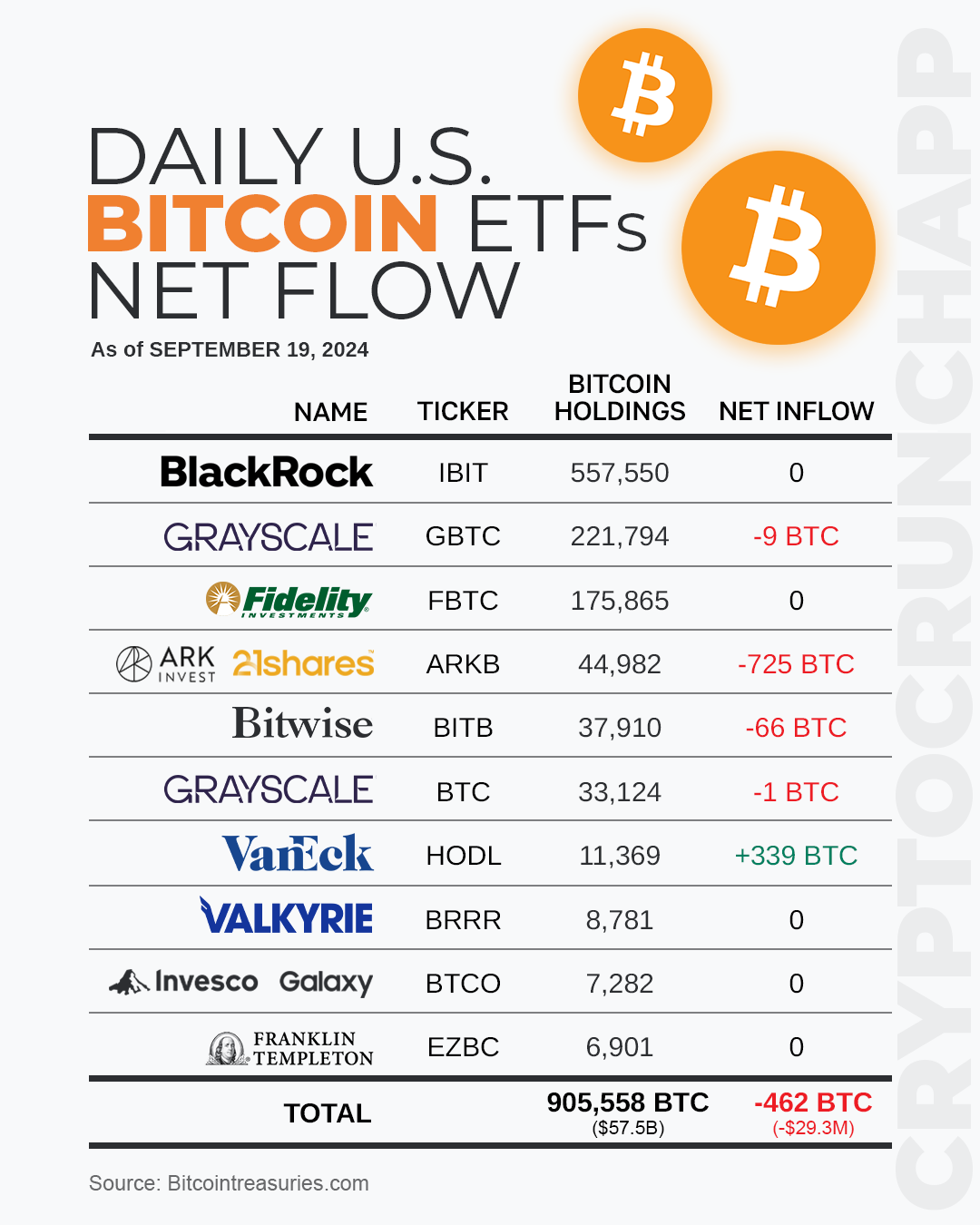 Daily US Bitcoin ETFs Net Flow Analysis (As of September 19, 2024)